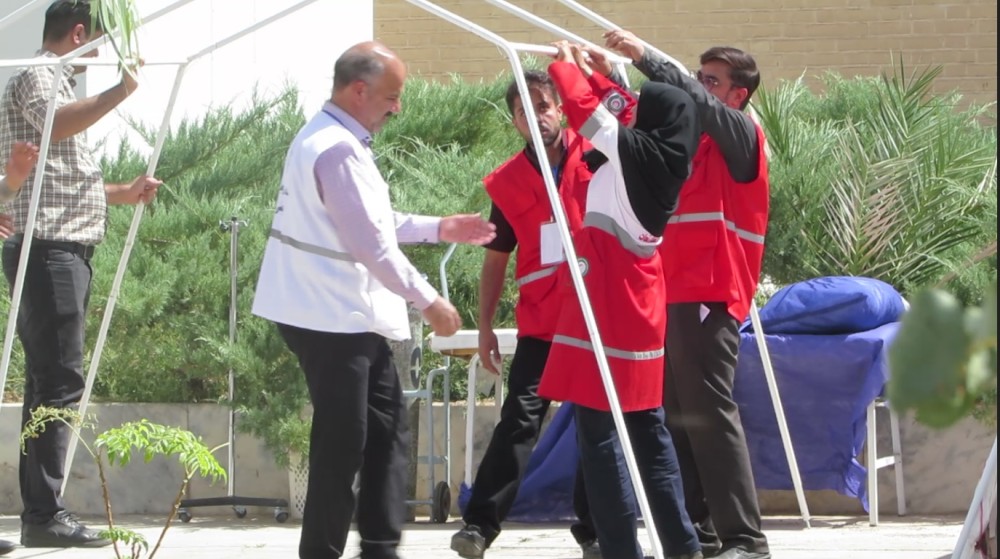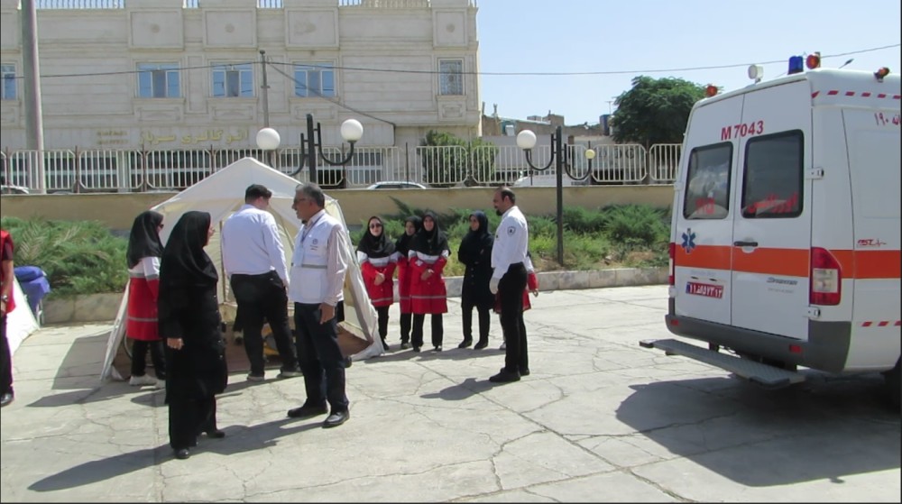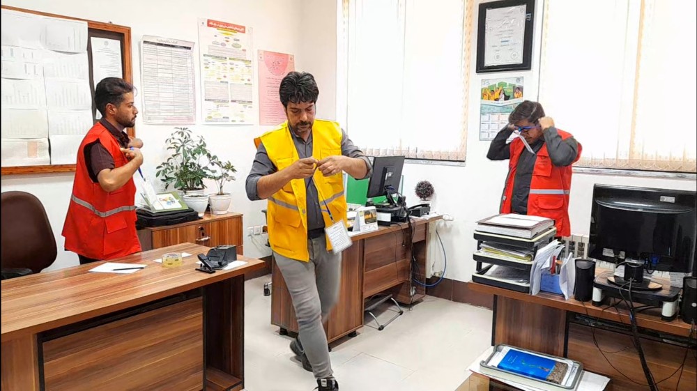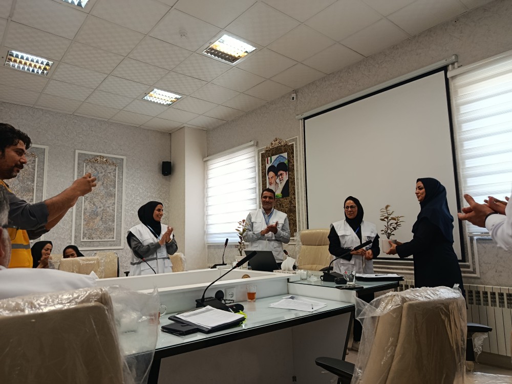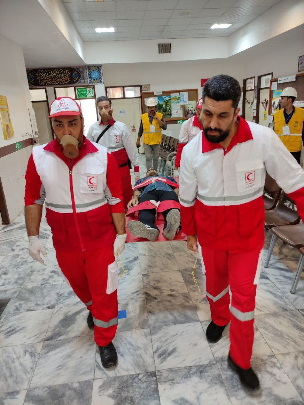 طبق سناریوی اعلام شده، پرسنل مرکز خدمات جامع سلامت شهید آقایی در طبقه همکف با شنیدن صدای انفجار و پرسنل شبکه بهداشت و درمان در طبقه فوقانی پس از اعلام کد 100 (کد تخلیه) با رعایت نکات ایمنی ساختمان را ترک نموده و در محل تجمع ایمن مستقر شدند.