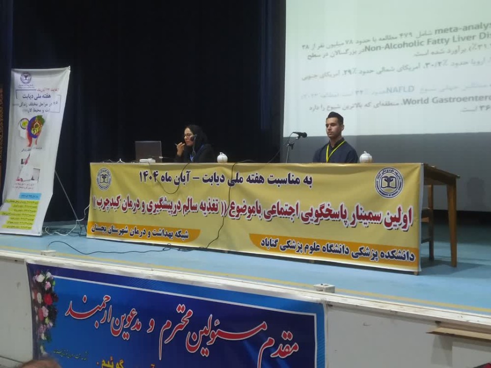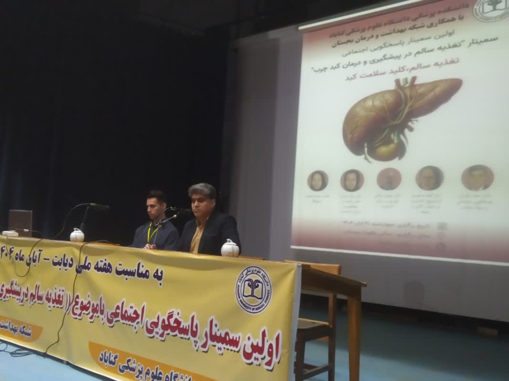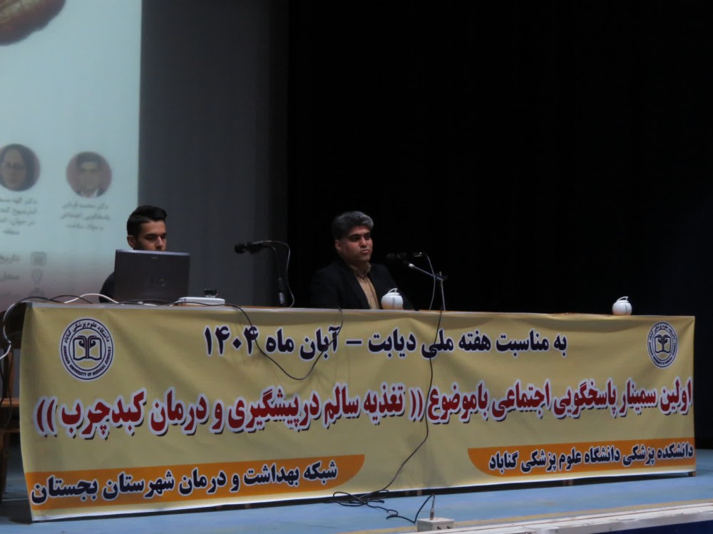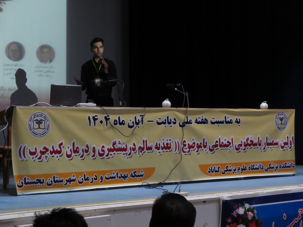 عصر روز چهارشنبه ۲۱ آبان ماه ۱۴۰۴ به همت دانشکده پزشکی دانشگاه علوم پزشکی گناباد و شبکه بهداشت و درمان شهرستان بجستان، در راستای پاسخگویی اجتماعی و با هدف افزایش سطح سواد سلامت جامعه، سمینار «تغذیه سالم در پیشگیری و درمان بیماری کبد چرب» برای اولین بار در سطح شهرستان بجستان برگزار گردید.