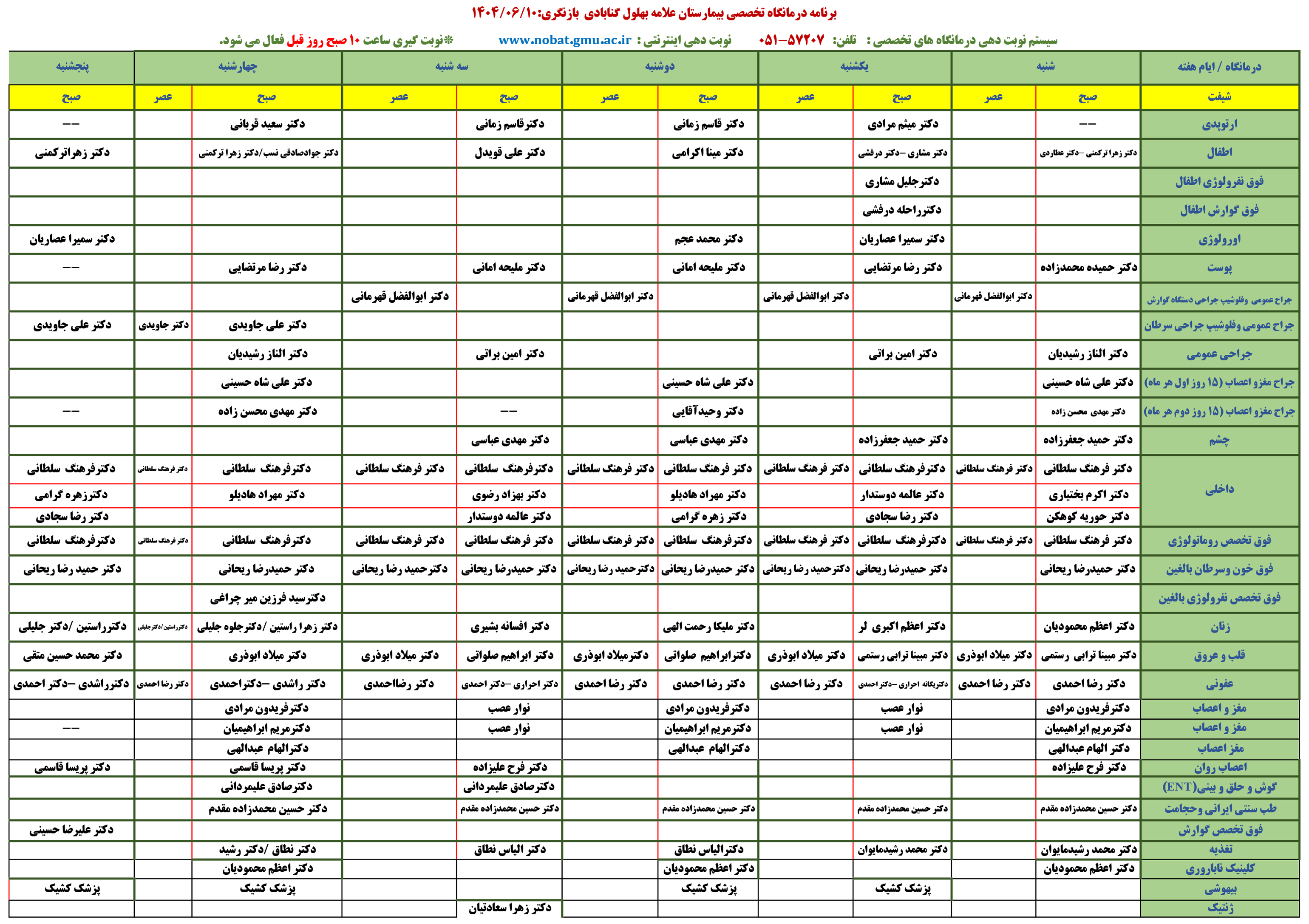- سامانه نوبت دهی آنلاین https://nobat.gmu.ac.ir