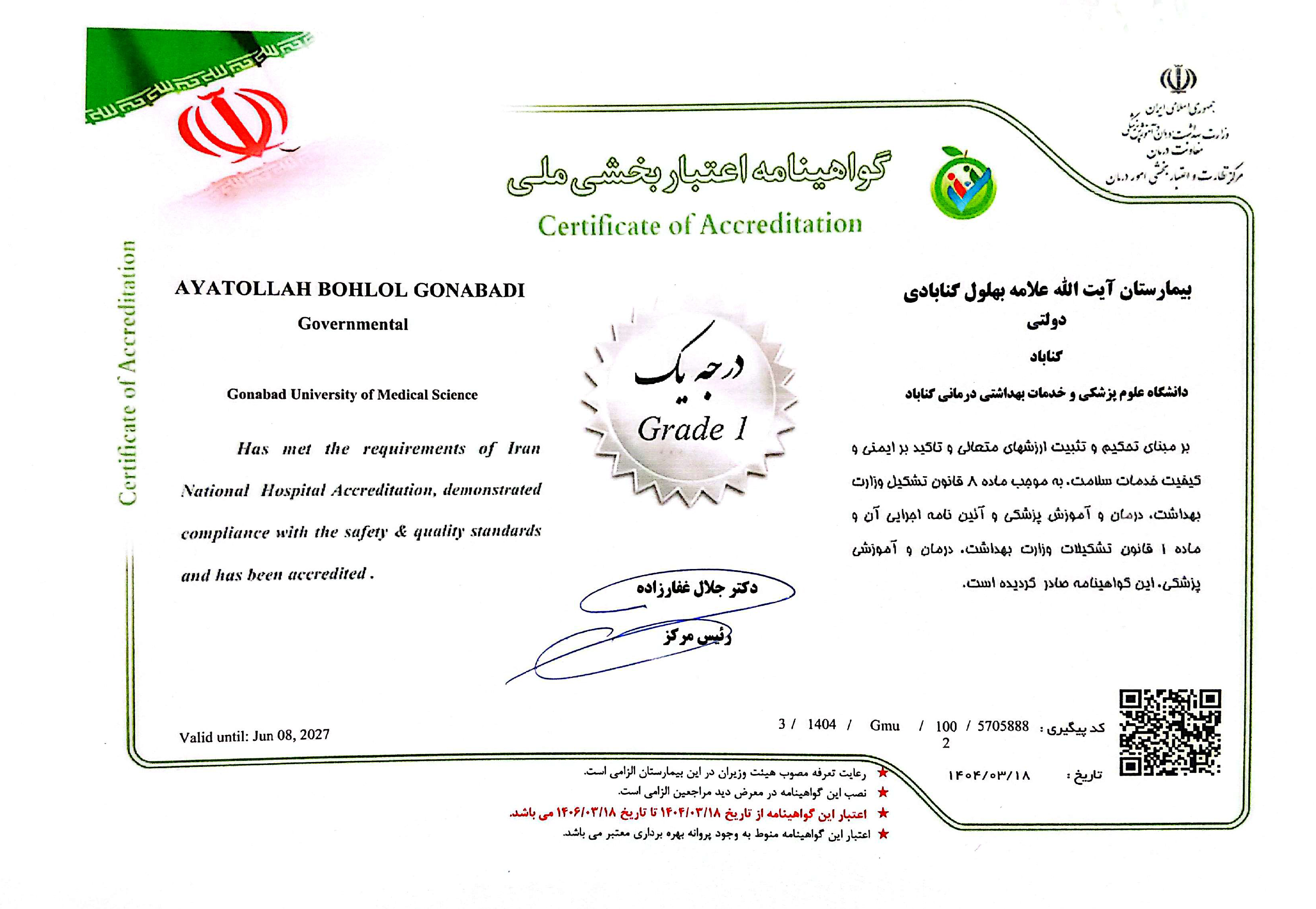 درجه اعتباربخشی بیمارستان علامه بهلول گنابادی: